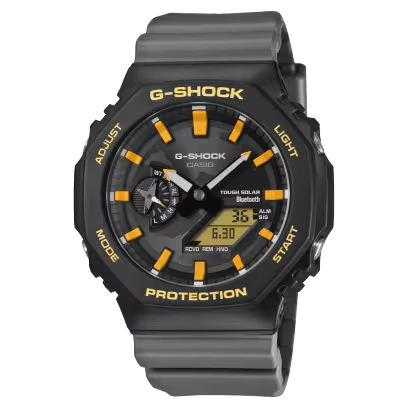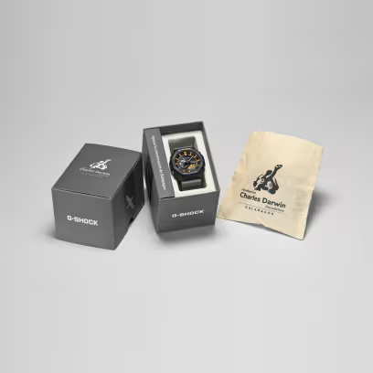 Declare your commitment to the Galápagos with a G-SHOCK collaboration timepiece created with the Charles Darwin Foundation — two great models inspired by two iconic species inhabiting these gorgeous islands. Our fourth collaboration with the Charles Darwin Foundation, an organization that engages in environmental conservation activities in the Galápagos Islands, has produced two different partnership watches: one inspired by the Galápagos Albatross and the other by the Sally Lightfoot Crab. Based on the GA-B2100 with its Smartphone Link and Tough Solar charging, and featuring a band and bezel made with bio-based resin produced from renewable organic resources, the timepieces honor these endearing creatures with environmentally focused functions and materials, vivid color, and unique designs. The GA-B2100DF-1A is inspired by the Galápagos Albatross, one of the largest birds on the islands, with a wingspan of over two meters. Its graceful glide on rising air currents is depicted in the shape of the indicator hand and on the band loop. A map of the Galápagos adorns the dial, accented with yellow details evoking the bird’s beak. The case back is engraved with the Charles Darwin Foundation logo and name in Spanish, and the band is printed with the statement “Apoyo la conservación de Galápagos.” (Spanish for “I support Galápagos conservation.”) These watches also come complete with special, plastic-free packaging, befitting a timepiece collaboration with the Charles Darwin Foundation.