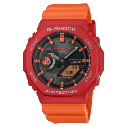 Declare your commitment to the Galápagos with a G-SHOCK collaboration timepiece created with the Charles Darwin Foundation — two great models inspired by two iconic species inhabiting these gorgeous islands. Our fourth collaboration with the Charles Darwin Foundation, an organization that engages in environmental conservation activities in the Galápagos Islands, has produced two different partnership watches: one inspired by the Galápagos Albatross and the other by the Sally Lightfoot Crab. Based on the GA-B2100 with its Smartphone Link and Tough Solar charging, and featuring a band and bezel made with bio-based resin produced from renewable organic resources, the timepieces honor these endearing creatures with environmentally focused functions and materials, vivid color, and unique designs. The GA-B2100DF-1A is inspired by the Galápagos Albatross, one of the largest birds on the islands, with a wingspan of over two meters. Its graceful glide on rising air currents is depicted in the shape of the indicator hand and on the band loop. A map of the Galápagos adorns the dial, accented with yellow details evoking the bird’s beak. The case back is engraved with the Charles Darwin Foundation logo and name in Spanish, and the band is printed with the statement “Apoyo la conservación de Galápagos.” (Spanish for “I support Galápagos conservation.”) These watches also come complete with special, plastic-free packaging, befitting a timepiece collaboration with the Charles Darwin Foundation.