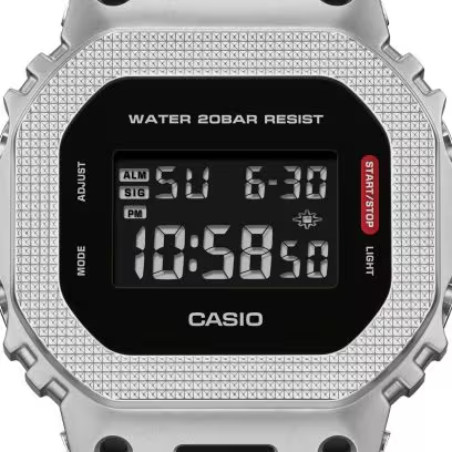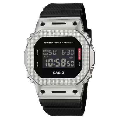 Streamlined design, striking functional beauty, shock-resistant construction — a toughness-driven G-SHOCK with a monochromatic modern industrial look. The digital GM-5600, with iconic shape and metal bezel, and the analog-digital combination GM-2100 take on an achromatic color scheme that highlights the chic beauty of simplicity and functionality. The textured pattern of the metal bezel and the touch of red for the function label, symbolizing G-SHOCK dedication to total toughness, showcase pure functionality in design. The bezel’s unique form features openings that allow the center case inside to show through, flaunting the core technology of G-SHOCK: its shock-resistant structure. For the GM-5600BM and GM-2100BM, black ion-plating is applied to all bezel components other than the top surface, adding depth and solidity to the bezel and amplifying the chic, unified look. Delivering both streamlined, universal design and practical utility, this is a timepiece to enjoy for years to come.