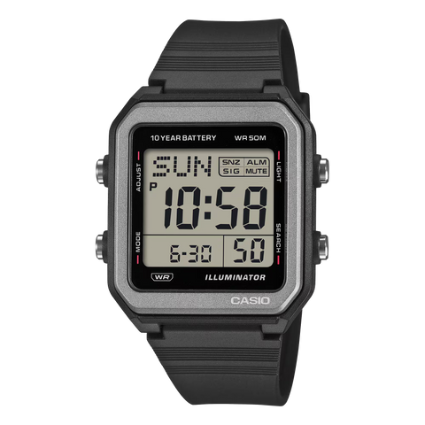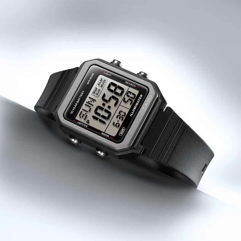 Slip on a simple, yet practical digital watch with a boldly angular design. With large LCD for outstanding visibility, LED backlight for an easy read, and a 10-year battery that keeps you going for years, this watch is also packed with handy functions like world time, stopwatch, alarm, timer, full-auto calendar, and more.