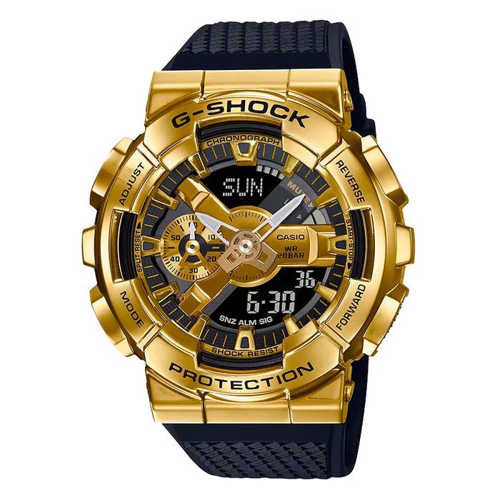 The stainless steel bezel of this analog-digital GM110 Series model have been forged, cut and polished to give it its distinctive design. The GM110G model has a metallic look in a gold color.