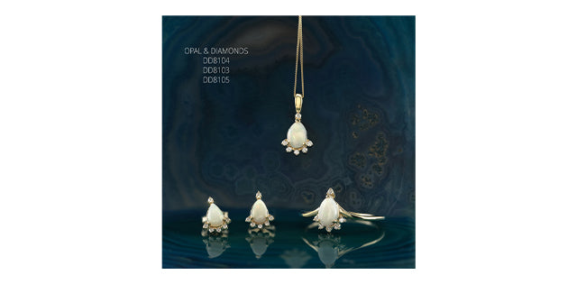 12 Diamonds= .07ct tw, 6x4mm Pear Opal