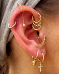 Enhance your curated ear-stack with our 14kt seamless huggers, available in yellow gold. These elegant huggers fit effortlessly in helix, tragus, daith, and other cartilage piercings.