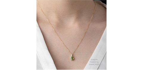 Peridot with Diamond Teardrop Necklace, 18" chain