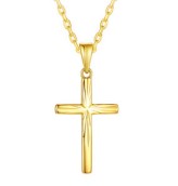 Sterling silver with gold-plate diamond-cut cross necklace. Accompanied with an 18" sterling silver chain and branded gift box.