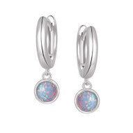 Sterling silver Opal drop hoop earrings. Huggie style hoops.