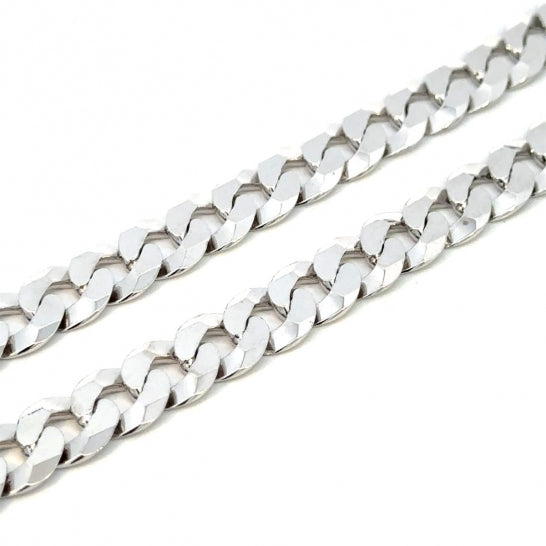 Sterling silver Solid Flat Curb link bracelet with rhodium.