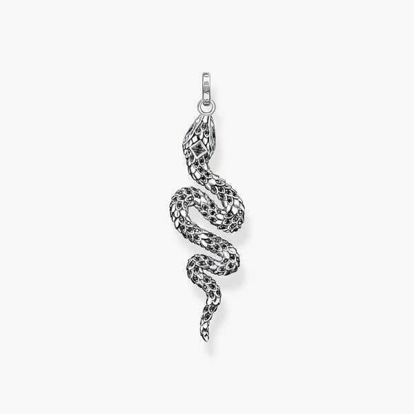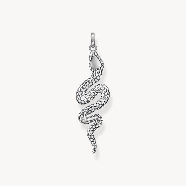 Mystical snake: this large pendant is elaborately crafted from recycled 925 sterling silver. Its highlight is a winding snake whose scales are for a vivid design. Black cubic zirconia stones accentuate the eyes and the scales lending the silver pendant a noble radiance. A THOMAS SABO engraving adorns the eyelet of this piece of jewellery. It can be worn as desired on a necklace from the THOMAS SABO collection.