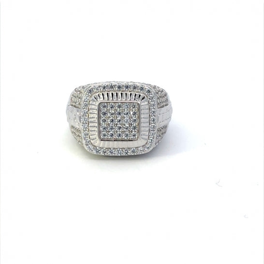Sterling Silver Men's Flashy Pave Zirconia Ring