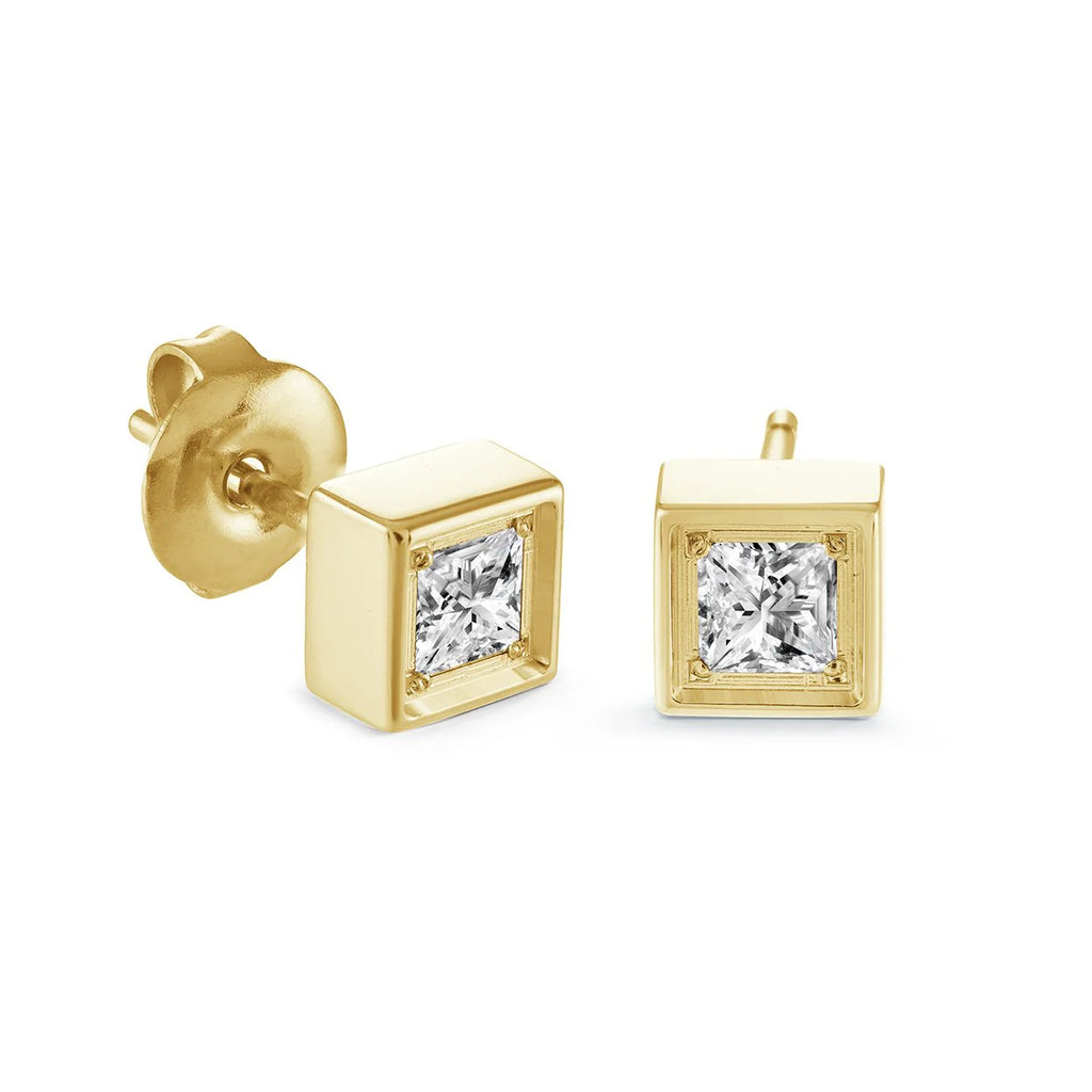 GOLD-IP-S.STEEL WHITE-CZ 5.5MM-SQUARE-STUD EARRINGS