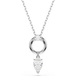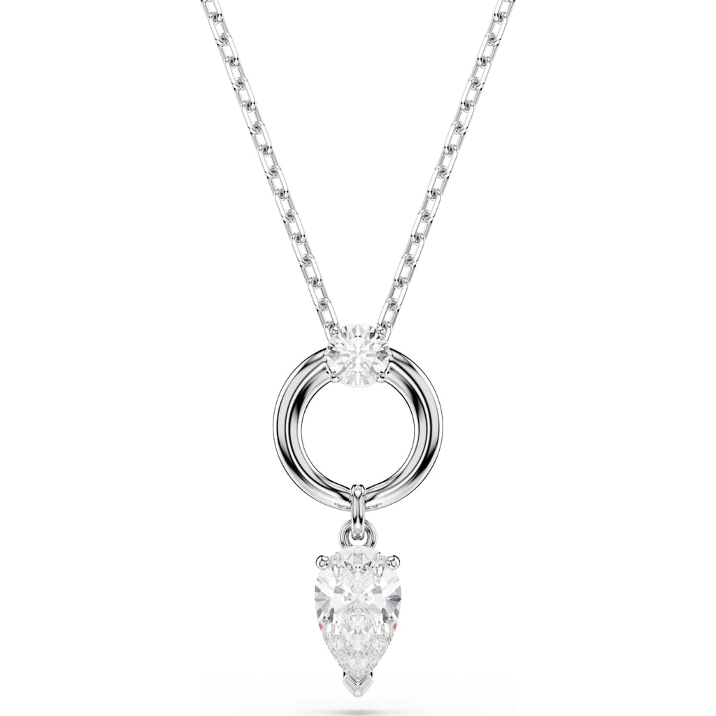 This Mesmera pendant blends radiance with refinement to create an eye-catching everyday piece of jewellery. The shimmering motif features a pear-cut Swarovski Zirconia, which is attached to a luxurious rhodium plated hoop. An additional round-cut Swarovski Zirconia is placed at the centre, while a sliding mechanism on the chain allows the pendant to be easily adjusted to your desired length. Wear it with the matching earrings to create your own stunning set.