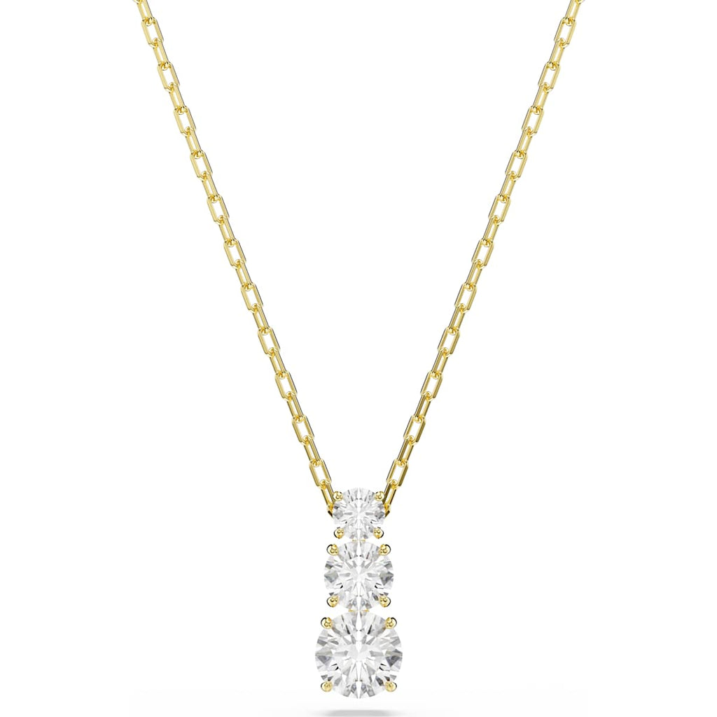 Inspired by the concept of eternal love, this romantic pendant is timelessly elegant. The trio of clear Swarovski Zirconia are majestically suspended from a gold-tone plated chain, creating a piece of jewellery that is full of emotion. It’s the perfect gift for a loved one, and can be worn with a matching pair of pierced earrings or a ring.
