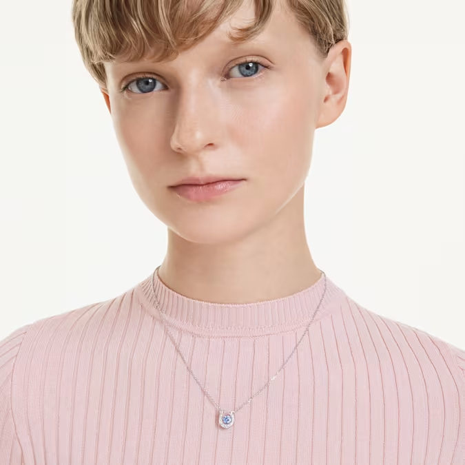 Symbolica pendant Crystal pearl, Round cut, Pavé, Horseshoe, Blue, Rhodium plated