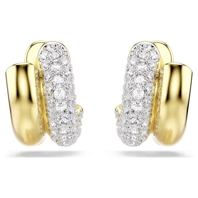 Dextera hoop earrings Round cut, Mini, White, 18k gold finish