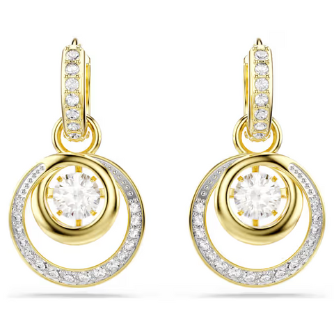 Hyperbola drop earrings Round cut, White, 18k gold finish