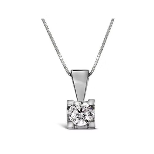 Diamond solitaire pendant featuring a 0.12ct round brilliant cut Canadian diamond, set in 10k gold.