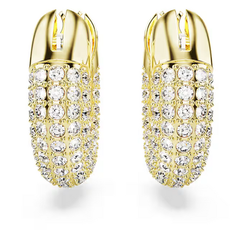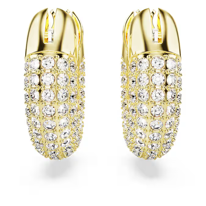 A modern spin on classic hoop earrings, this genderless pair will lend a dynamic touch to any outfit. Its sculptural design celebrates Swarovski's iconic Pavé technique with glittering foiled crystals set against a sleek 18k gold plated frame. Not just for daytime, wear this statement duo with after-dark looks, too. These earrings are part of the Dextera Family, designed for Collection III.